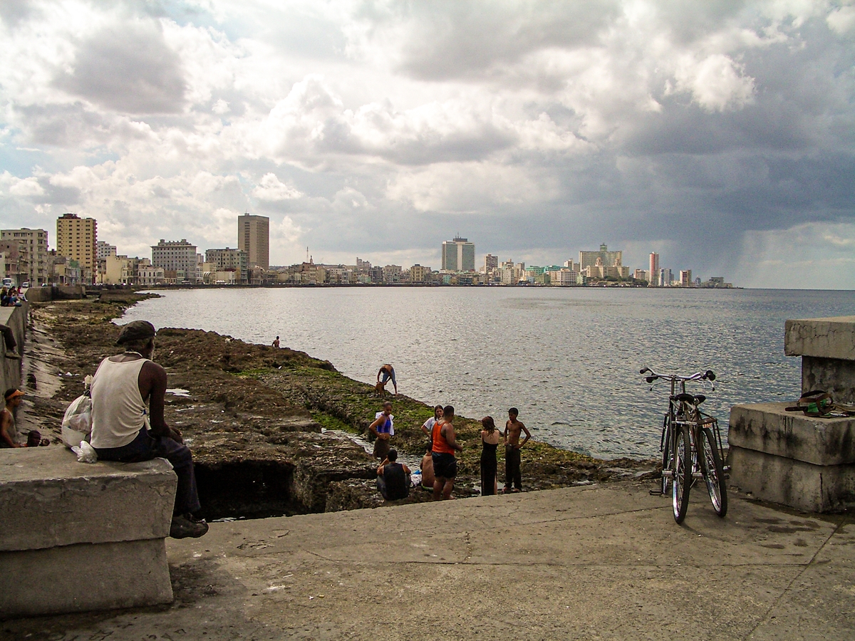 Am Castillo de San Salvador de la Punta, dort wo das Meer in den Canal de Entrada fließt, schwimmen einige Einheimische mit Freunden und ihren Hunden im Meer. Einen Strand gibt es nicht, nur ein – für die Füße schmerzhaft aussehendes – breites Felsenufer. Von hier aus hat man einen großartigen Blick über den Malécon und die Skyline La Habanas, den Stadtteil El Vedado.