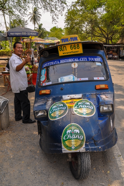 Wang gondelt uns zum nÃĪchsten Tempel, als uns zwei Farangs zunÃĪchst nur freundlich anlÃĪcheln. Kaum halten wir, kommen die beiden auf uns zu. Er, ein Deutscher, erkundigt sich, wie viel wir fÞr das Tuk-Tuk bezahlen und ob sich die Fahrt lohnt. Ich, voller Freude Þber den bisherigen Tag, empfehle den beiden, sich auch unbedingt ein Tuk-Tuk zu nehmen und es uns gleich zu tun. Als ob es keine anderen Tuk-Tuks in Ayutthaya gÃĪbe, fragt der unbeholfene Potsdamer unseren Wang, ob er ihm eine Telefonnummer eines Kollegen geben kÃķnnte.