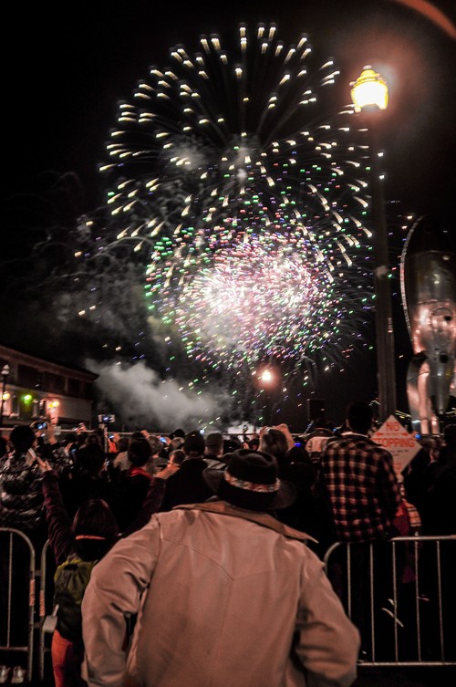 Wir schaffen es. Das Feuerwerk soll über dem Wasser zwischen dem hübschen Ferry Building und der San Francisco–Oakland Bay Bridge stattfinden. Wir kommen problemlos recht weit nach vorne. Es dauert nicht lange und der Countdown beginnt: 10, 9, 8, 7, 6, 5, 4, 3, 2, 1: Happy New Year … und die Show beginnt!